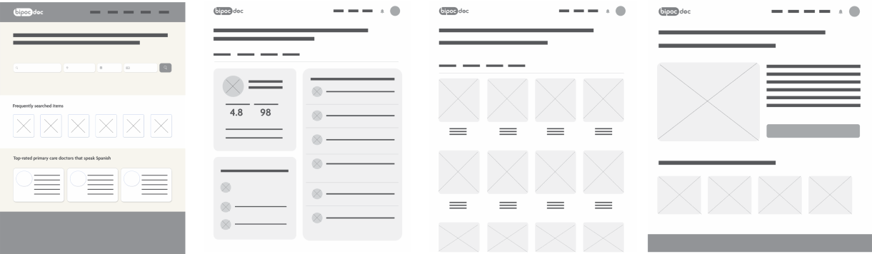 Two of our primary users were using the website to find a doctor and book an appointment. Our Spanish-speaking persona was looking for a Spanish-speaking primary care doctor, options she chose in the onboarding - so, once she arrives at her personalized home screen, she will be served doctors that fit her preferences along with search options.