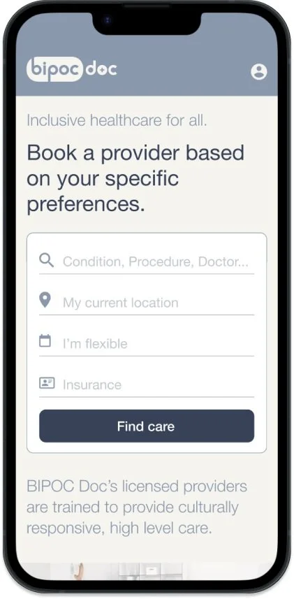 Full stack design for a healthcare platform catering specifically to the BIPOC community.