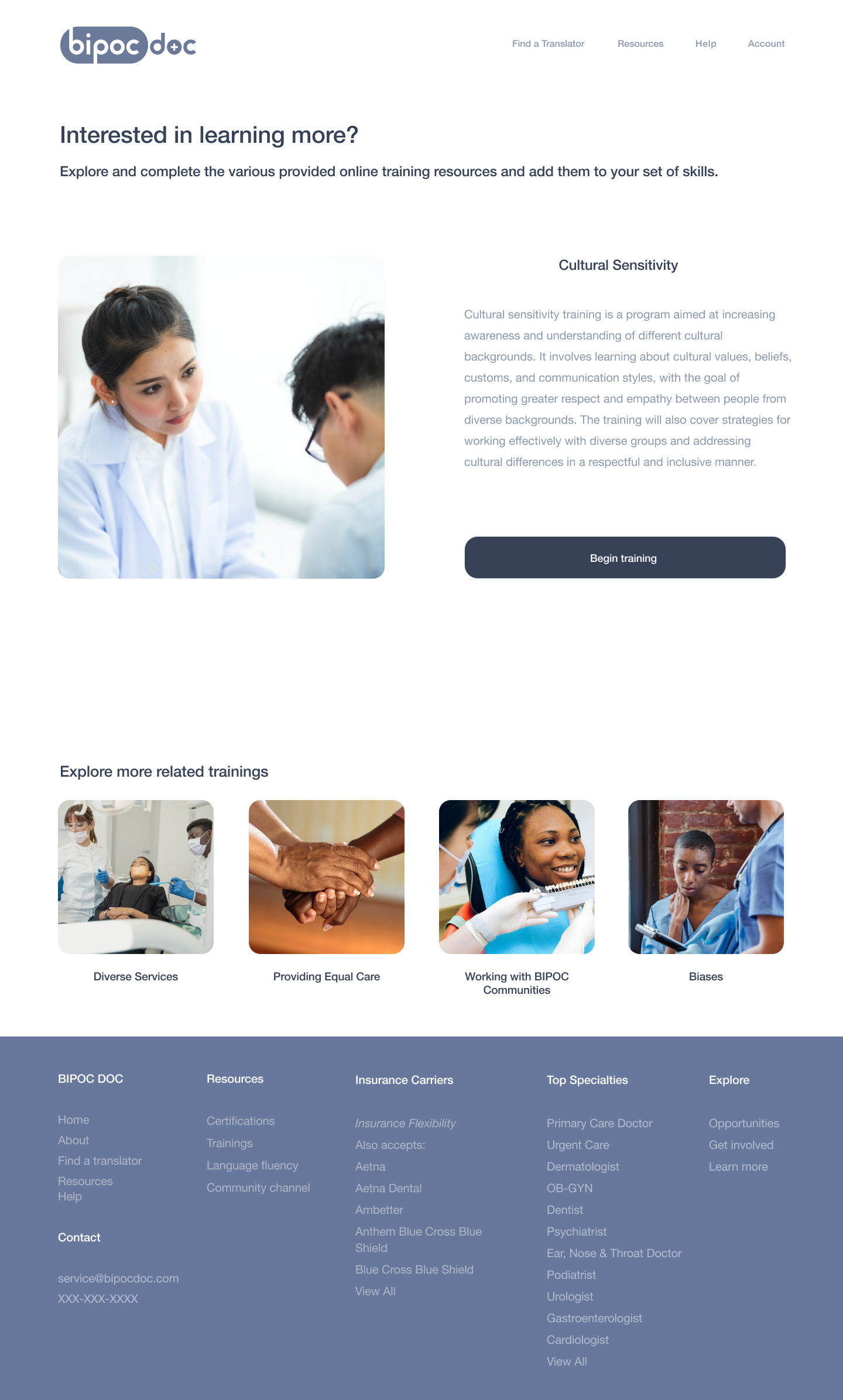 page of training programs BIPOC Doc offers providers